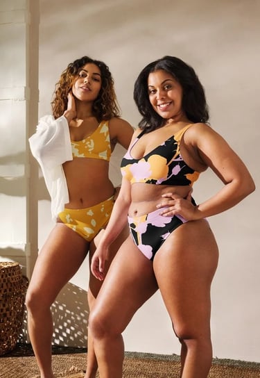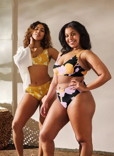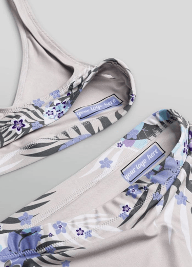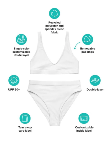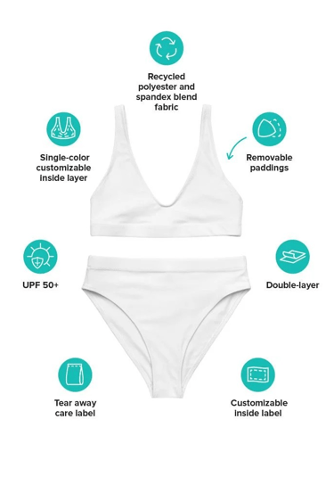 The All-Over Print Recycled High-Waisted Bikini combines sustainability with style. Made from eco-friendly materials, it offers a comfortable fit with customizable designs, making it a perfect choice for eco-conscious consumers seeking fashionable swimwear.