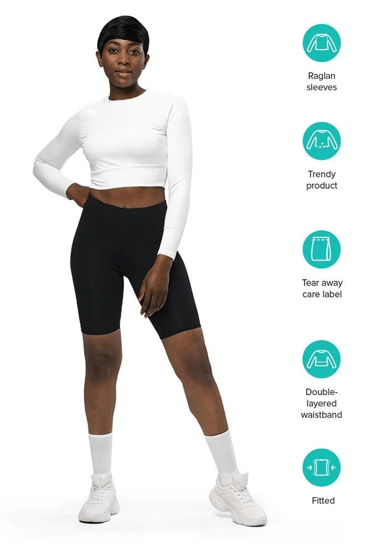 Turn heads, turn tides. This eco-conscious crop top blends trend-forward fashion with planet-friendly materials, making it the perfect pick for everything from sunrise workouts to sunset street strolls. Designed with a sleek cropped cut and customized edge-to-edge with your own artwork, it’s an elevated essential for those who wear their values loud and proud.