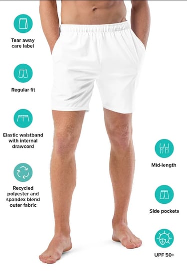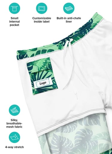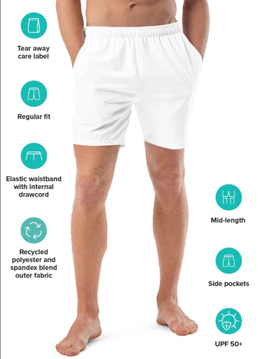 🌊 Dive into style and sustainability with our All-Over Print Recycled Swim Trunks — the perfect blend of eco-friendly innovation and bold, custom design!