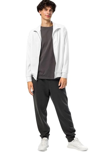 This isn’t just any track jacket — it’s a statement in sustainability and streetwear. Crafted with 95% recycled polyester, it blends bold custom design with an eco-conscious mission. Whether you're layering up for a morning jog, heading out in style, or building your athleisure line — this jacket is ready to perform.