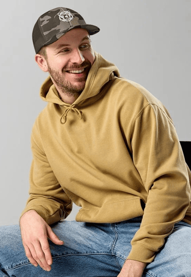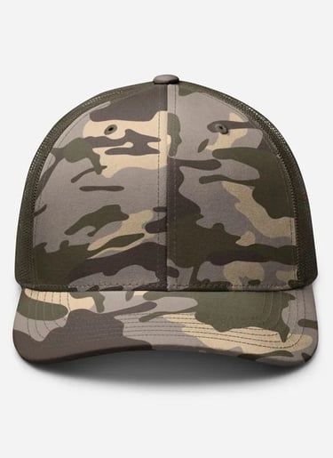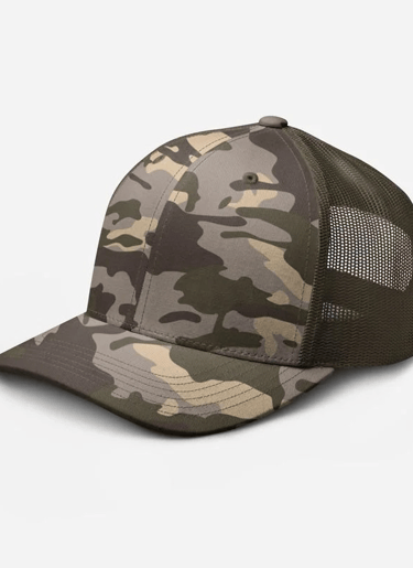 Blend bold style with breathable comfort in this structured camo trucker hat, featuring a cotton front, mesh back, and adjustable snapback. With a rugged low-profile design and customizable embroidery, it's built for both the trail and the street. Make a statement—without standing out.