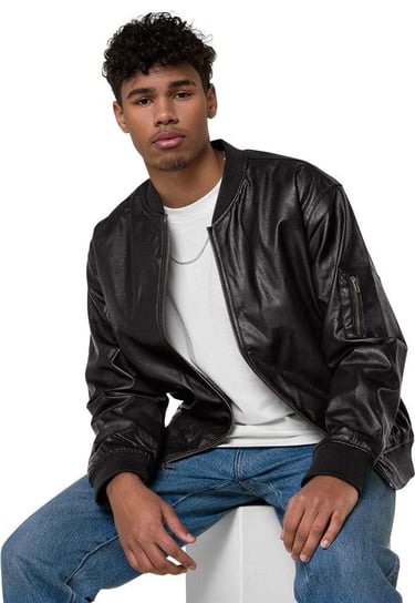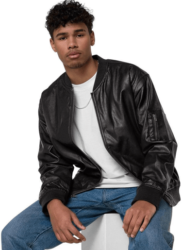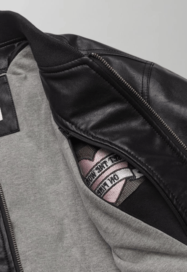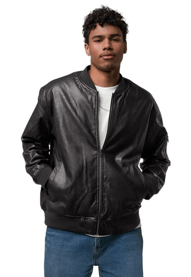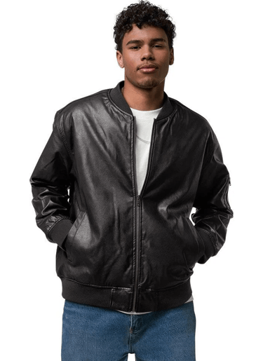 Make a powerful statement without saying a word. This faux leather bomber jacket blends classic streetwear attitude with modern-day comfort — finished with a sleek, high-end look that elevates any outfit.