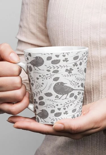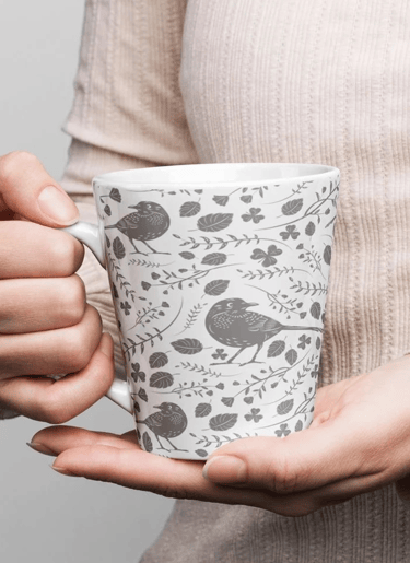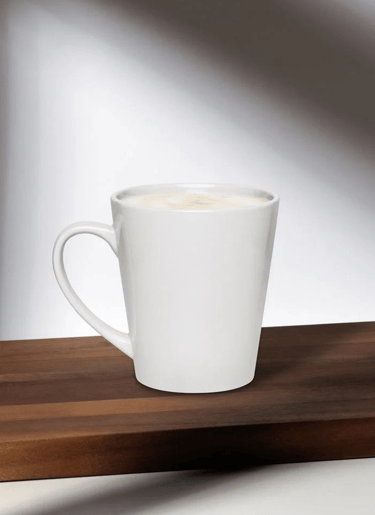 Start your day with style! This 12 oz latte mug features a sleek cone shape, glossy finish, and a fully customizable wrap-around design. It’s dishwasher and microwave safe, BPA and lead-free — the perfect blend of cozy and creative.