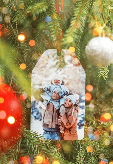 The Custom Metal Ornaments (4 Shapes) offer a durable, high-gloss finish perfect for festive personalization. Made from sturdy aluminum, each ornament includes a red ribbon and features vibrant sublimation printing on both sides. Available in Rectangle, Scalloped, Pet Paw, and Tag shapes, these lightweight ornaments retain their shape and color over time—ideal for custom holiday tree decor, pet keepsakes, or unique gift tags. Made on demand with no order minimums.