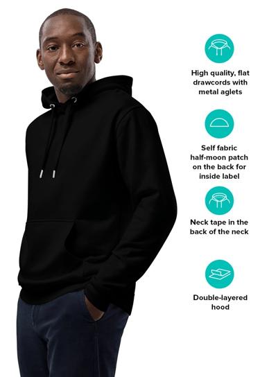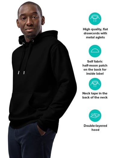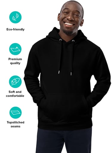 Upgrade your collection with the Premium Eco Hoodie available exclusively at Printful. The hoodie is made of high-quality organic and recycled materials and has a soft, brushed inside for a supreme feel during every wear. Featuring adjustable drawcords, ribbed cuffs, and a kangaroo pouch pocket, this eco-friendly piece combines comfort and function in one.