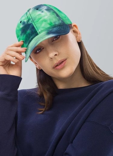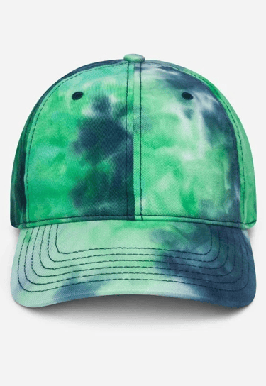 Make a bold statement with a splash of color. This one-of-a-kind tie-dye cap features a relaxed, low-profile fit with a pre-curved visor and adjustable buckle closure. Each piece is uniquely dyed—no two hats are alike—making your embroidered design truly one-of-a-kind.