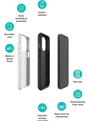 This dual-layer Tough Case is built for drops, bumps, and daily wear while showing off your style in matte or gloss finish. With full edge-to-edge design coverage, precision fit, and wireless charging compatibility, it’s your iPhone’s best armor—without the bulk.