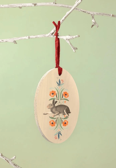 Comes with a red paper ribbon & pre-drilled hole for easy hanging